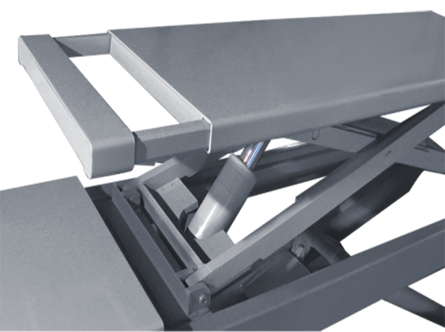 ◆整機6油缸設計,液壓同步,雙液壓系統(tǒng)、液壓鎖和機械三重保險裝置,下降自動解鎖。