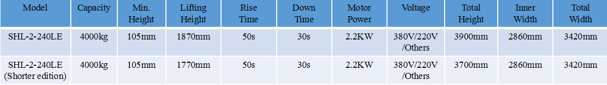 • SHL-2-240LE Clear-floor Two Post Lift