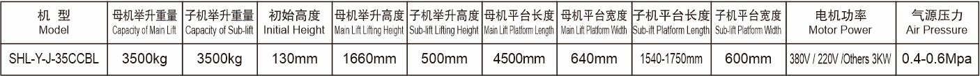 • SHL-Y-J-35CCBL 超超薄四輪定位子母剪式舉升機(jī)